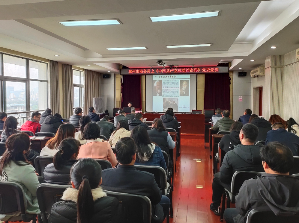动员大会结束后,中共柳州市委党校党史党建教研室副主任、副教授齐自琨为党员上《中国共产党成功的密码》党史党课。齐教授以风趣的语言、独特的见解,从“为什么选择马克思主义、为什么选择中国共产党和直面选择”三个方面带领市商务局全体干部职工共同解密中国共产党成功的密码,并引导大家从党史事件和党史人物中汲取智慧养分和前进力量,在平凡的岗位上谱写不平凡的诗篇。此次党课深刻、生动、精彩,受到全体干部职工的一致好评。